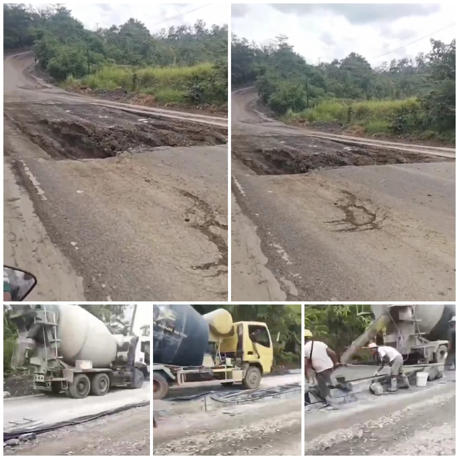 – Pekerjaan Dilanjutkan Setelah Disorot: Di akhir rekaman, barulah terlihat adanya aktivitas pengerjaan, di mana truk mixer semen (molen) berada di lokasi dan para pekerja aktif melakukan pengecoran (rigid pavement) pada salah satu segmen jalan.