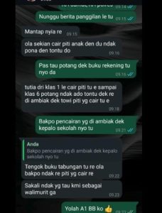 Ironisnya, dana BOSDA sebesar Rp54 juta sudah terlanjur cair pada tahun ini, namun pertanggungjawabannya masih dipertanyakan. Saat dikonfirmasi, Kepala Sekolah, Siirman, memberikan alasan yang tidak meyakinkan. Ia mengklaim dana tersebut digunakan untuk gaji guru, ATK, dan iuran lainnya.
